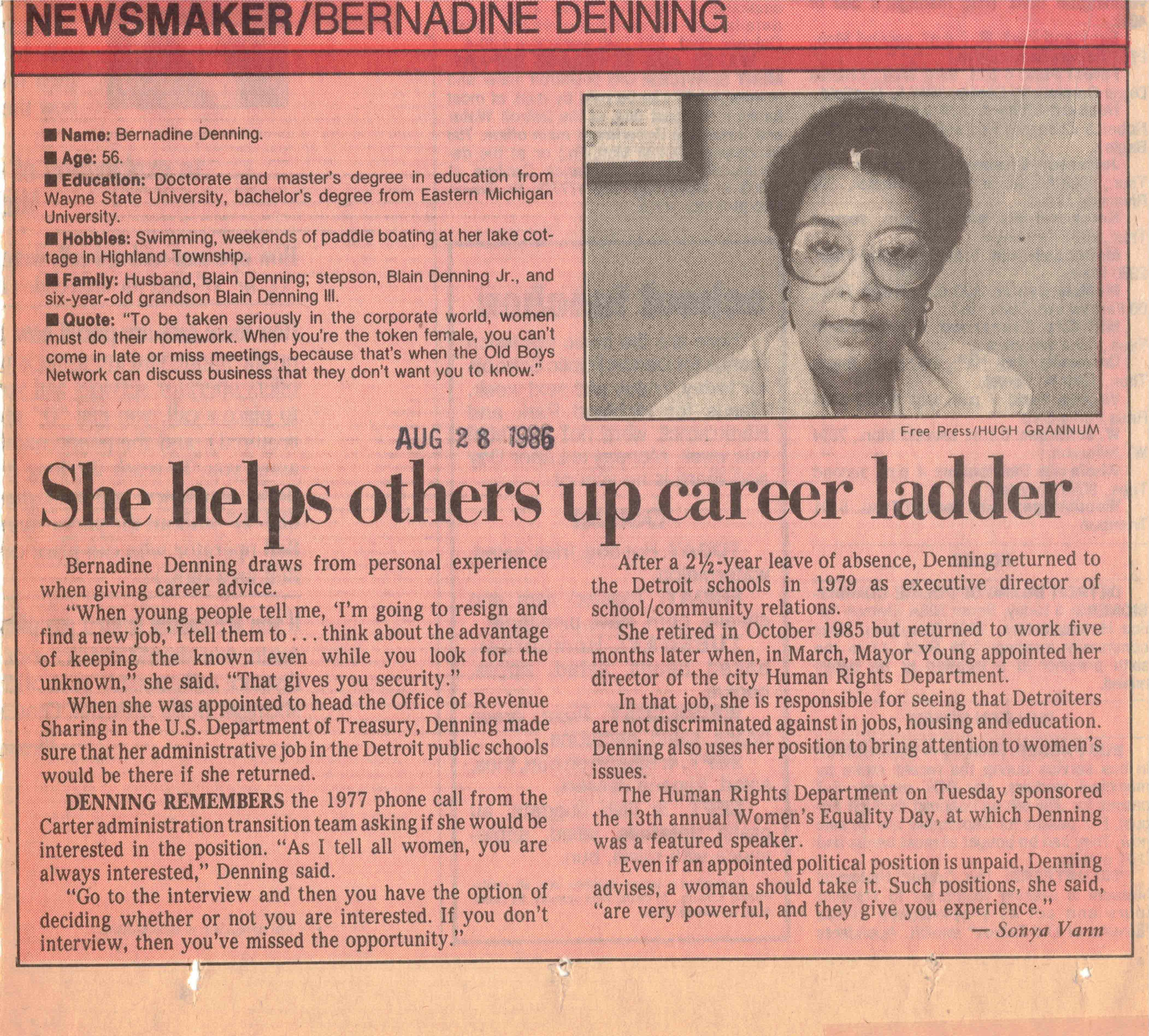 - Newsmaker: Bernadine Denning, August 1986