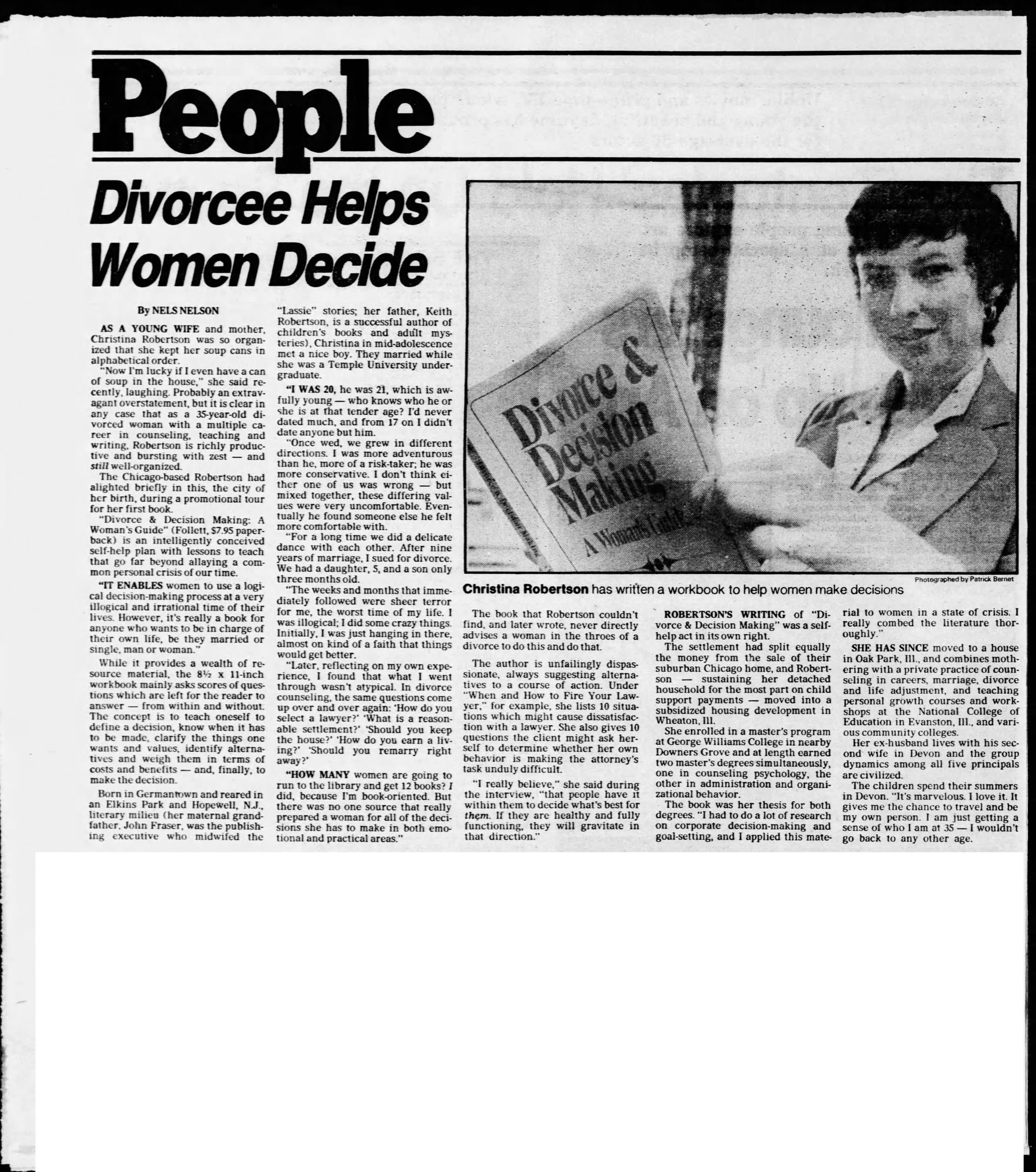 - Christina discusses her book, A Woman’s Guide to Divorce and Decision Making, Philadelphia Daily News, August 6, 1980.
