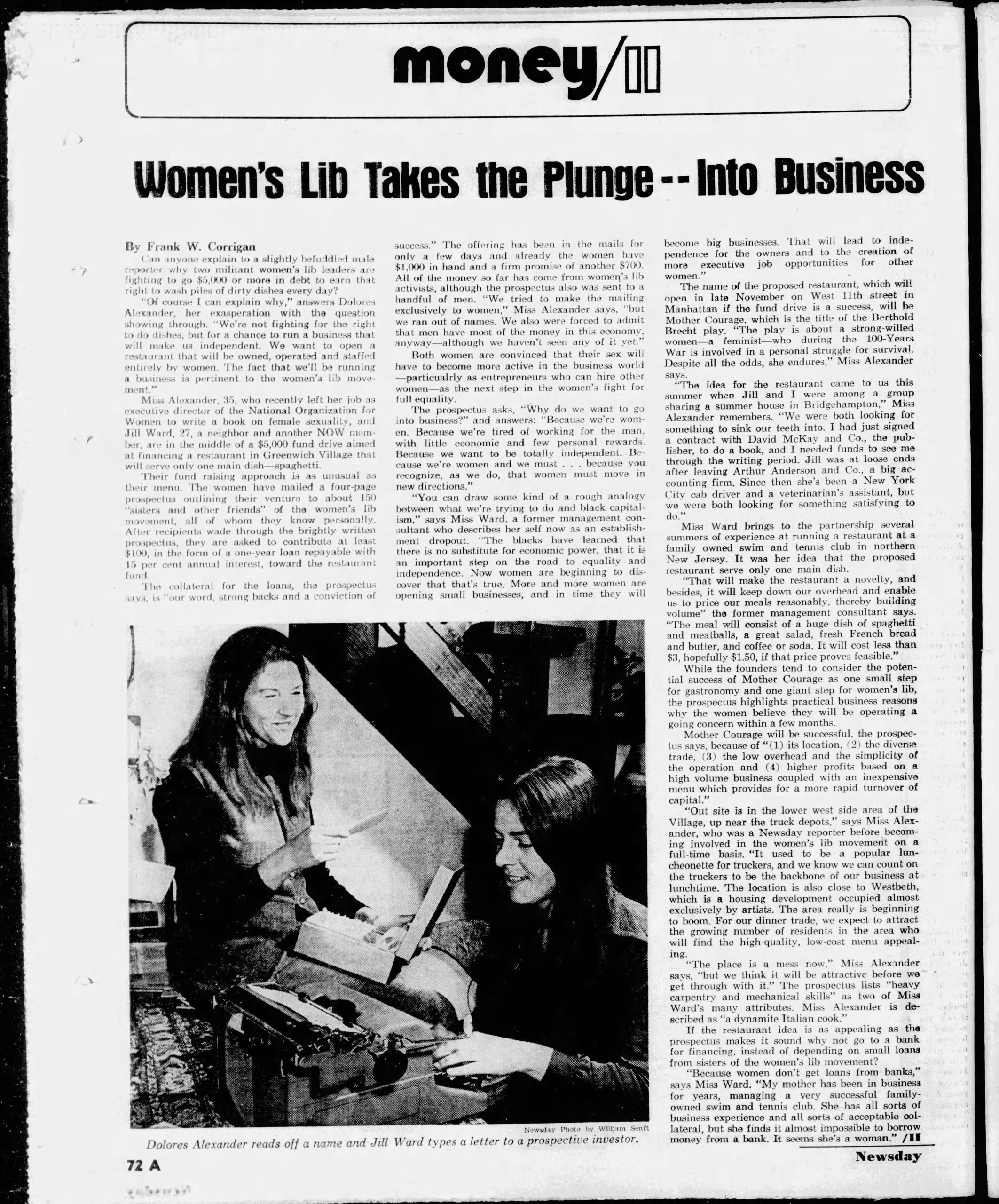 - “Women’s Lib Takes the Plunge – Into Business,” Newsday, October 1971