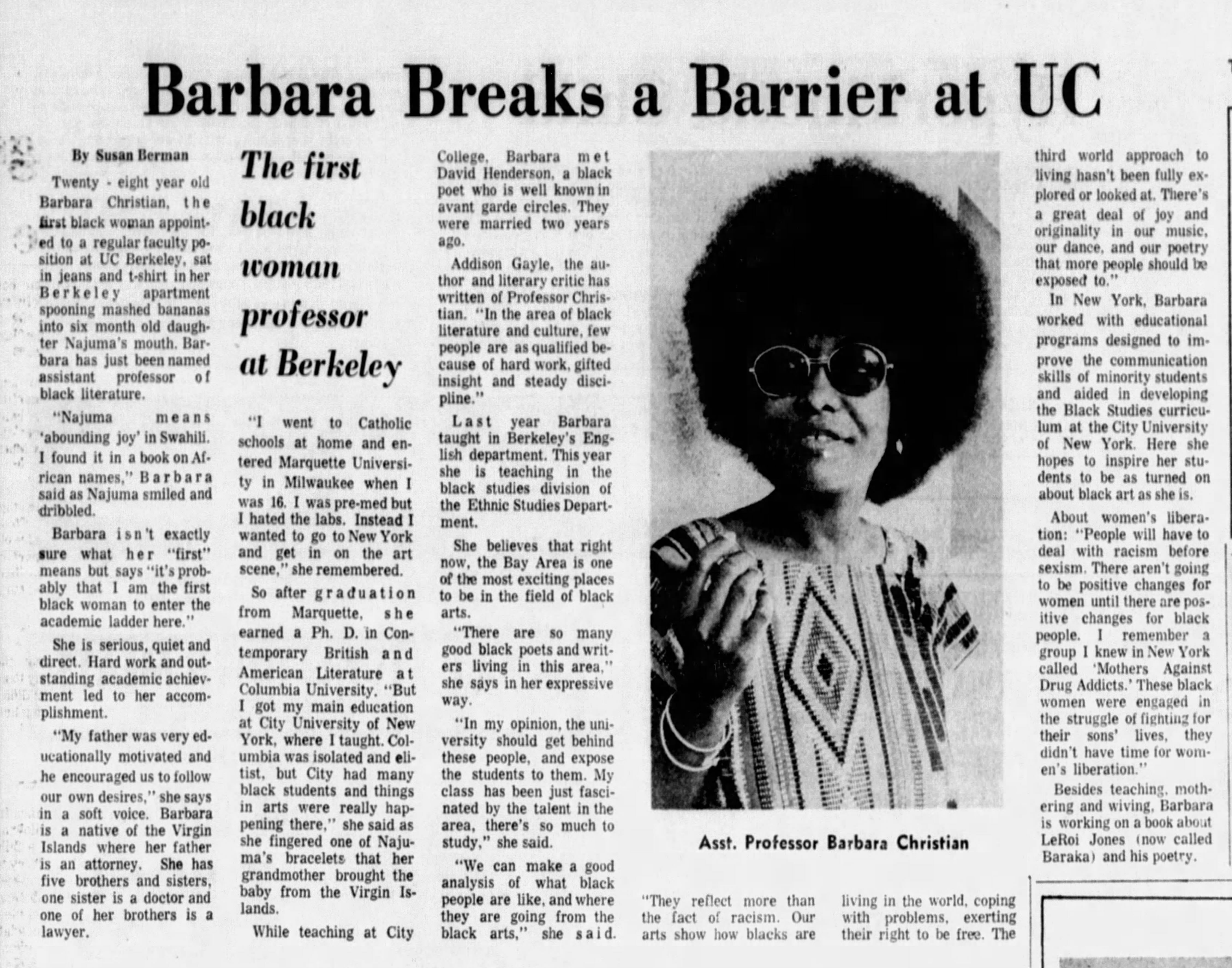 - Guide to Barbara Christian Papers, The Bancroft Library – University of California, Berkeley