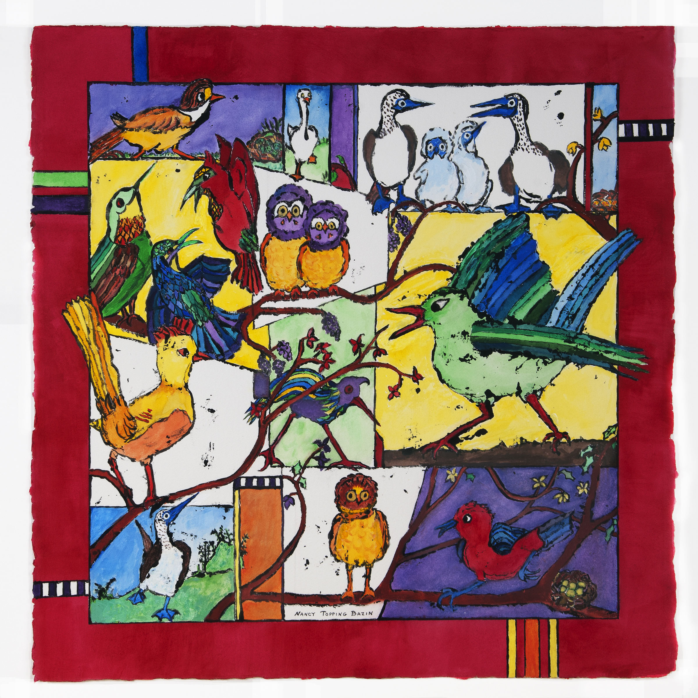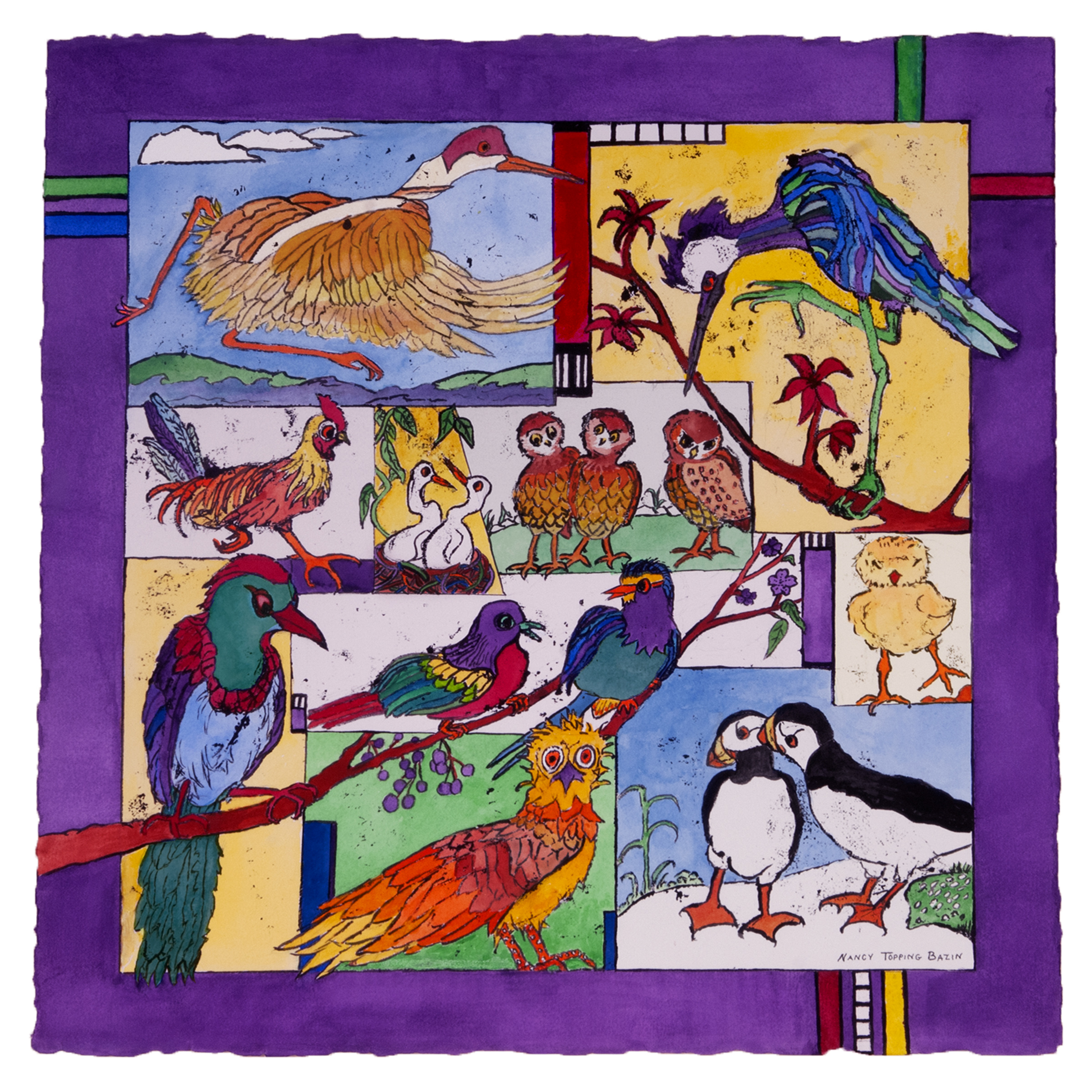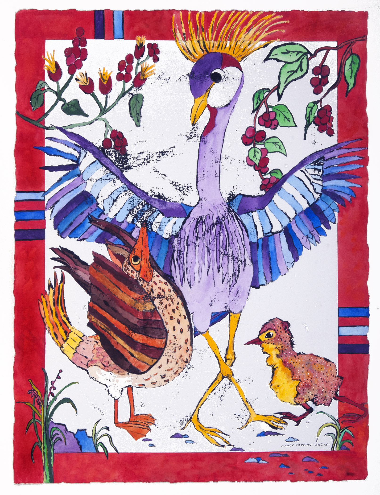 Photo 1. Nancy, 1972. Photo 2. Dr. Carolyn H. Rhodes, professor of English (left), and Dr. Nancy T. Bazin, associate professor of English and new director of Women’s Studies, 1978 (Photo: Old Dominion University Libraries). Photo 3. Nancy as Chair of the English Department, Old Dominion University 1985-89. Photo 4. Nancy painting her Whimsical Birds.