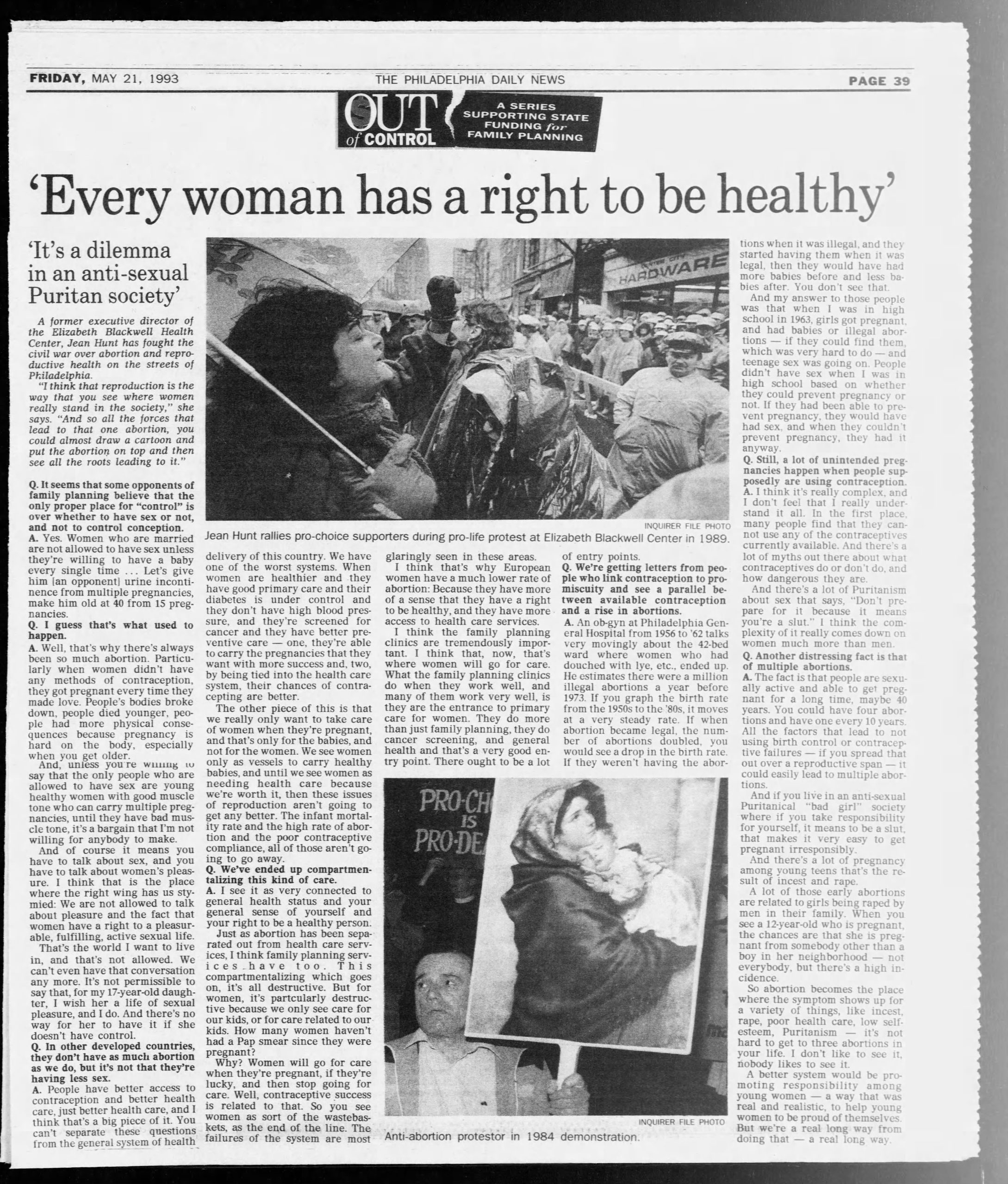 - “Every Woman Deserves the Right to Choose” Event: Abortion Rights, March and Rally, Prints D 1170 – D 1172. JoAnne Fischer organized this effort with Jean Hunt In Support of Women’s Lives, a national counter demonstration at the National Right to Life meeting in Cherry Hill, New Jersey, July 17, 1982