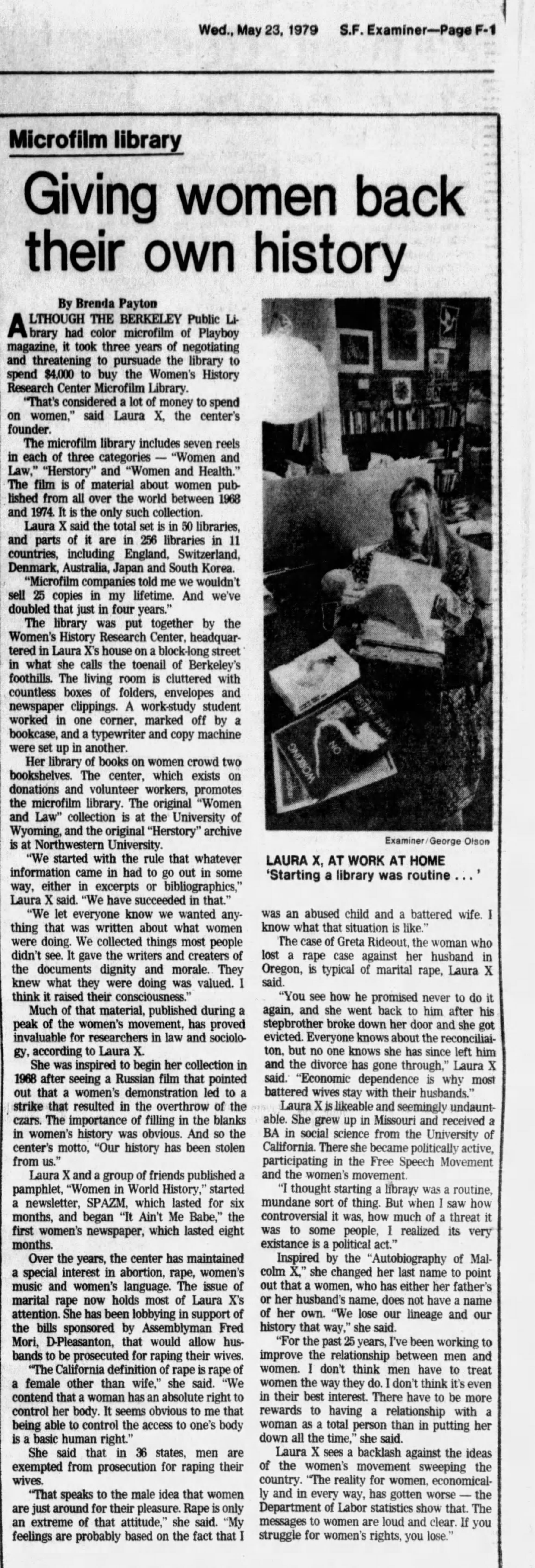 - Giving women back their own history. The San Francisco Examiner, May 23, 1979