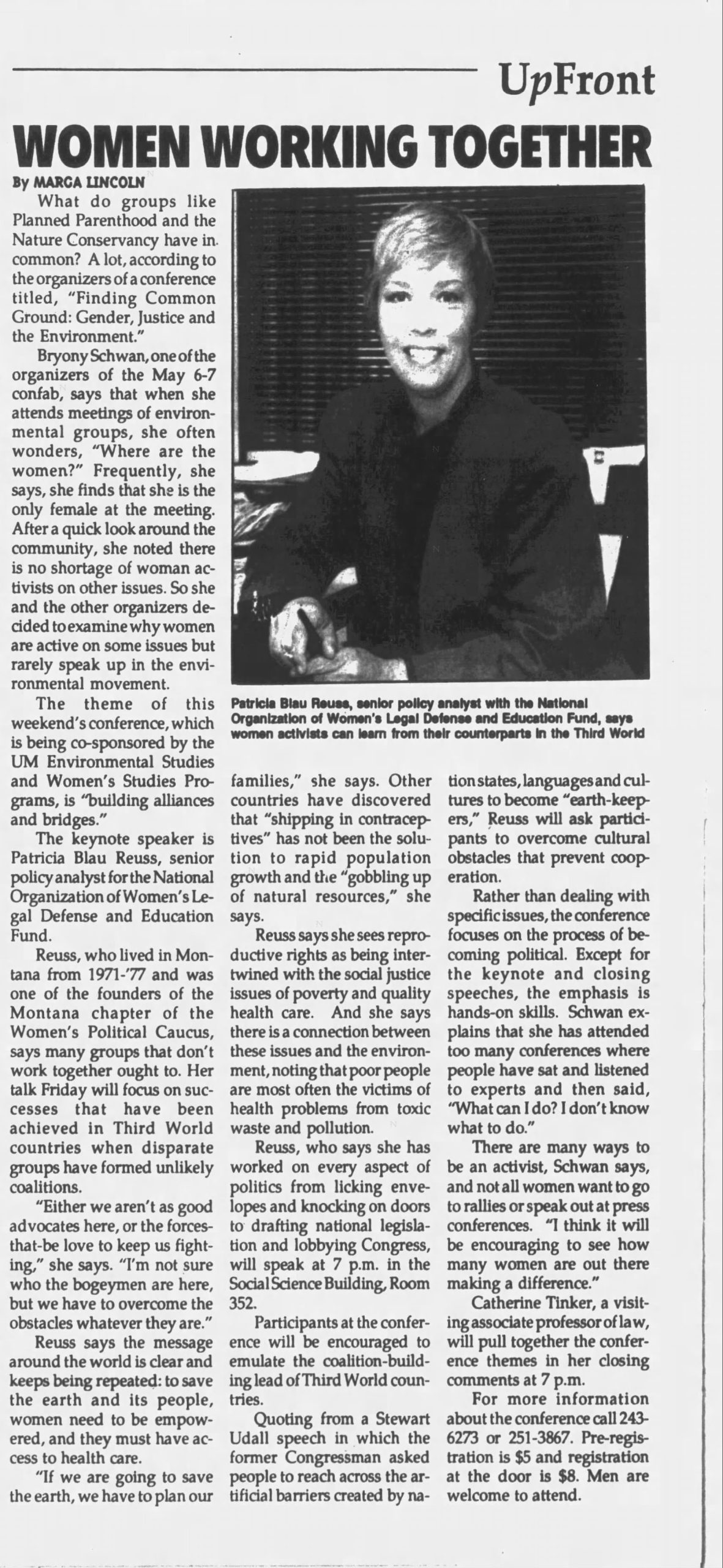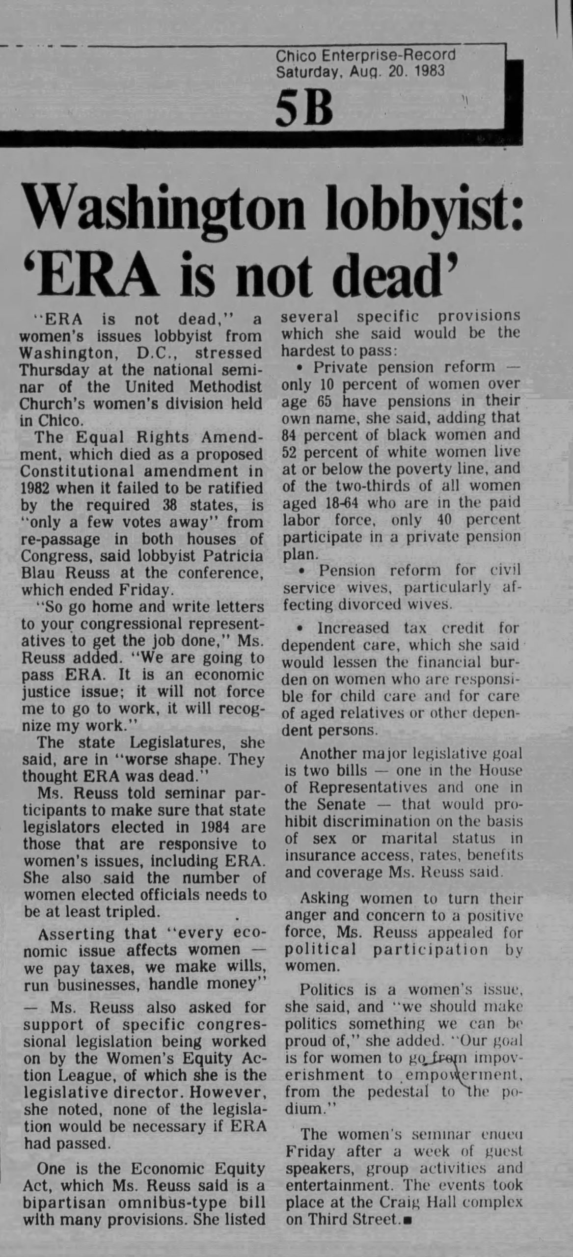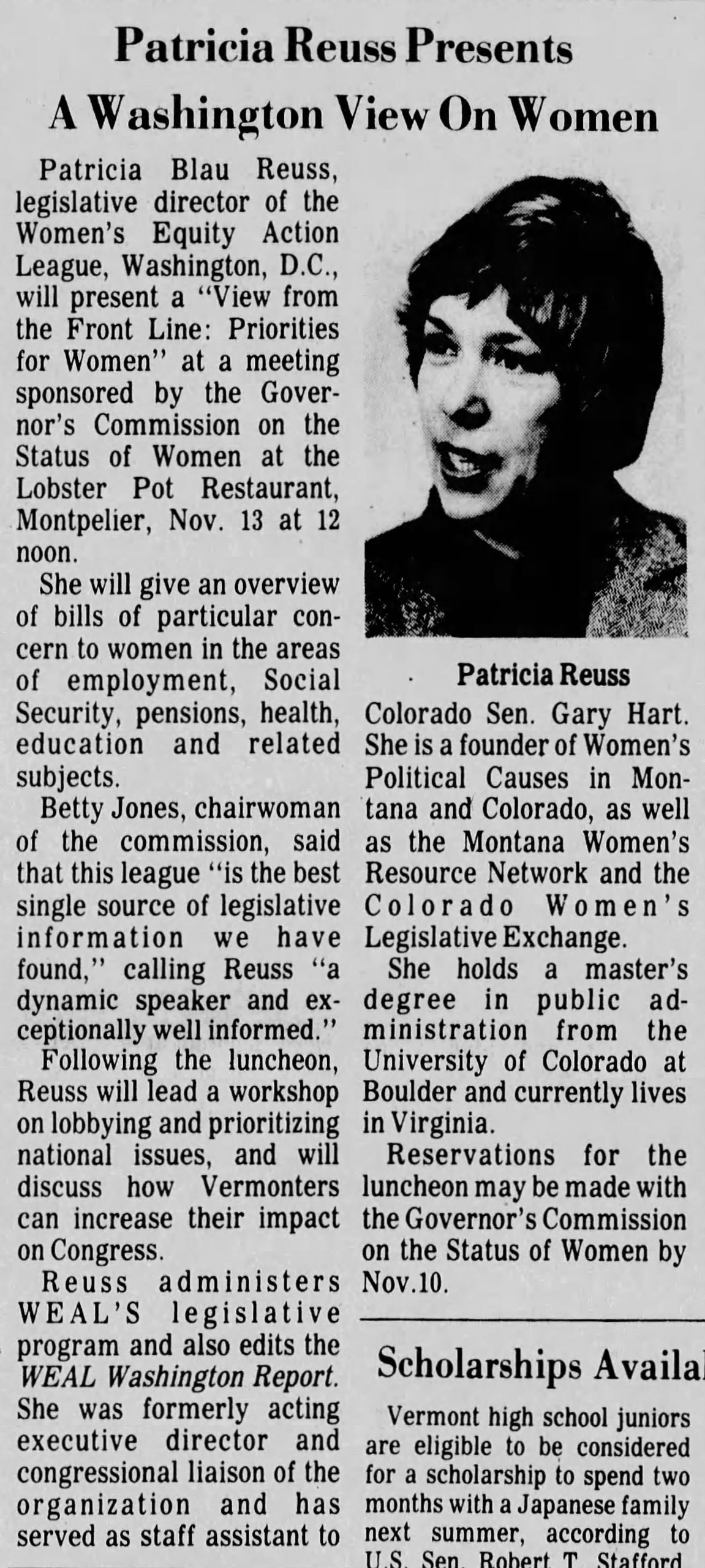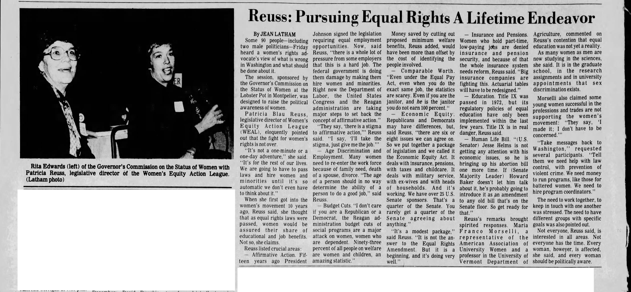 - Women in the 98th Congress, Patricia Reuss, Legislative Liaison, Women’s Equity Action League, 1991