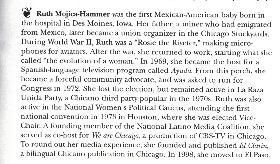 “I carried double load in the women’s movement—my constituency was Chicanos/Hispanics. In the Chicano movement, my constituency was my Hispanic and Caucasian sisters.”