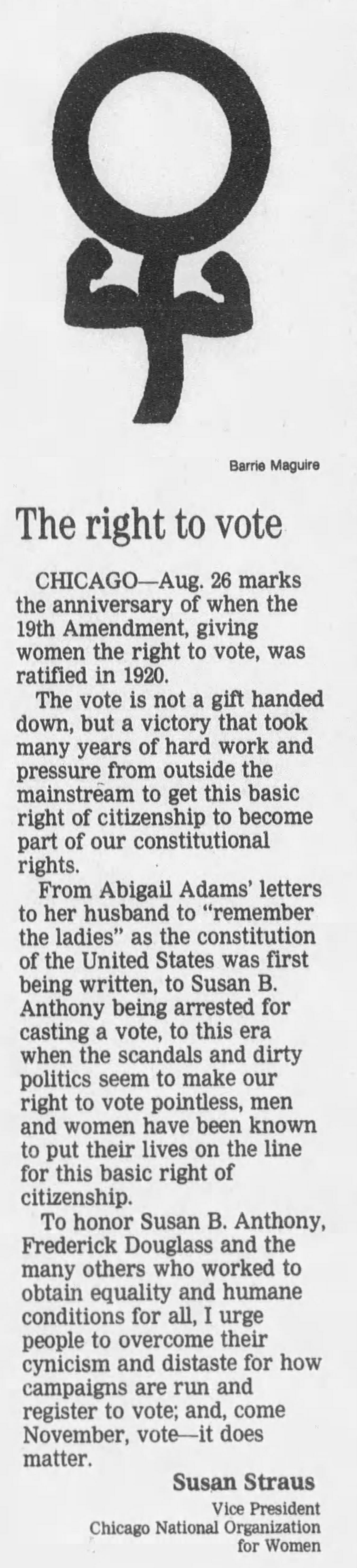 - The Right to Vote – Chicago Tribune August 25, 1998